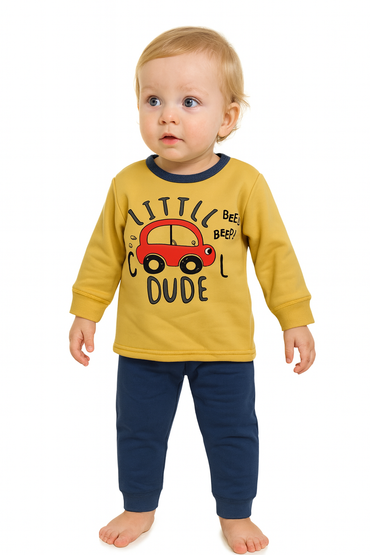 winter pyjama fleece inside little dude yellow