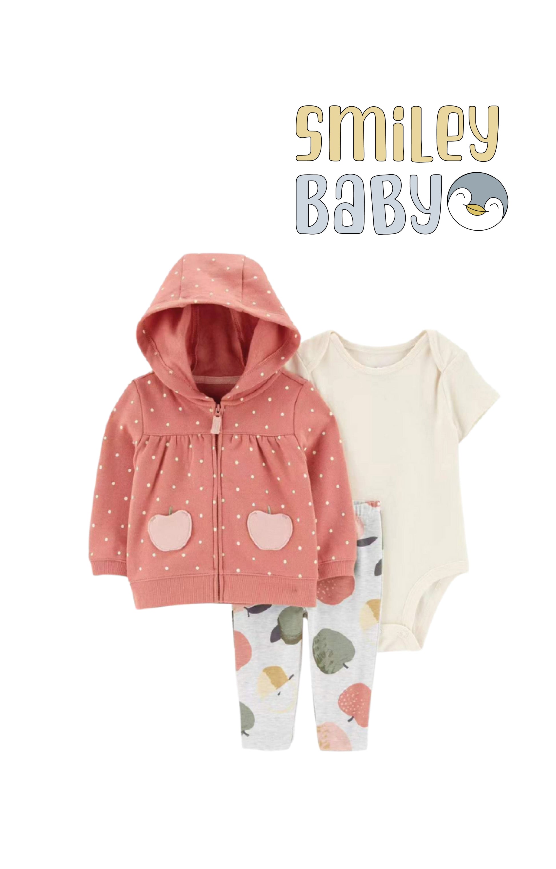 3 piece set includes zip-front cardigan
