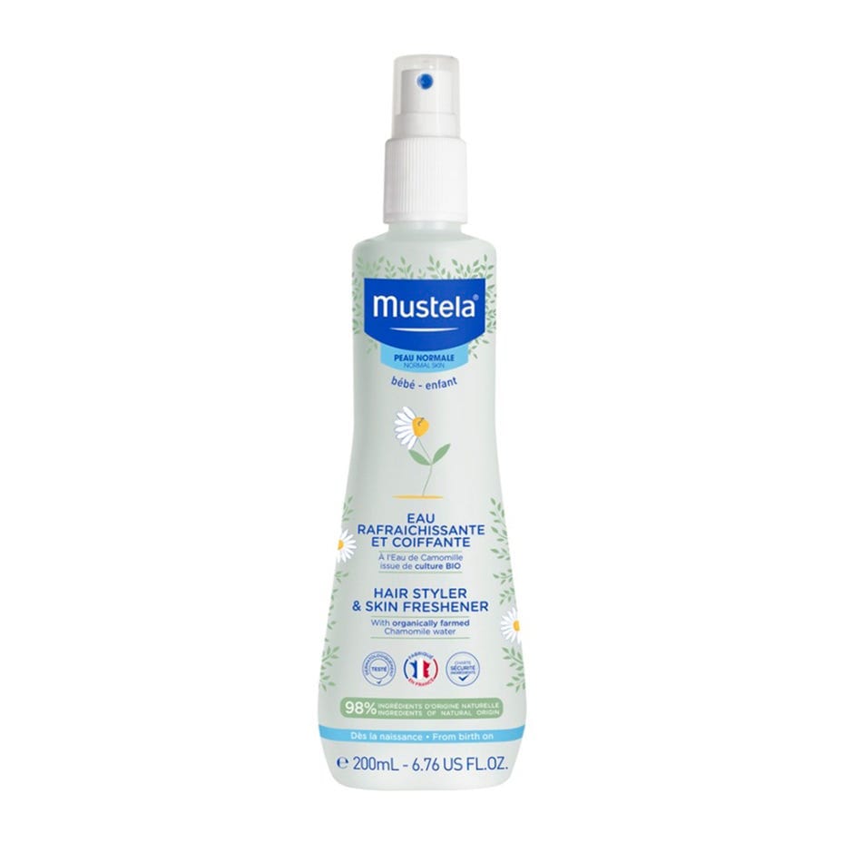 Our Hair Styler & Skin Freshener is a multi-purpose product that refreshes your child's skin, detangles and adds shine to hair. Made with 98% ingredients of natural origin and formulated with the iconic Mustela scent, your baby* will smell, look and feel refreshed.